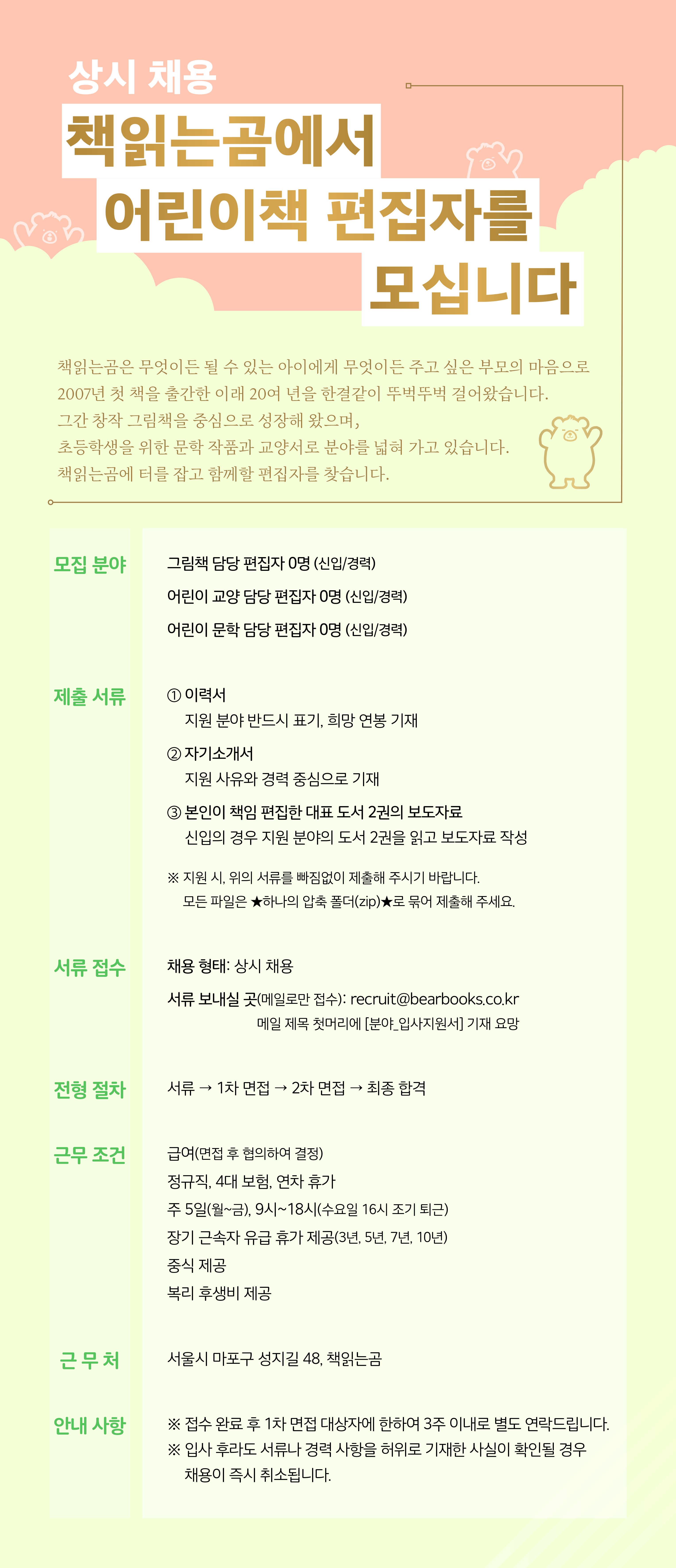 [채용 공고] 책읽는곰 어린이책 편집자 모집 (상시 모집)