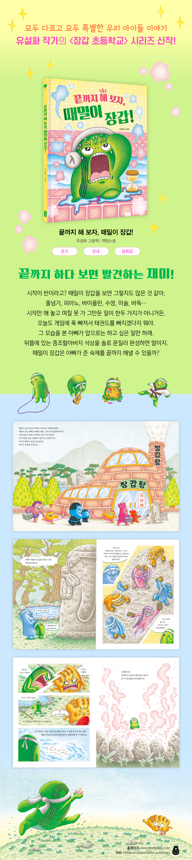 오늘도 게임에 푹 빠져서 시작한 지 며칠 되지도 않은 태권도를 그만두겠다지 뭐예요. 엄마가 그 꼴을 그냥 봐줄 리 없지요. 때밀이 장갑은 화가 머리끝까지 나서 잔소리를 퍼붓는 엄마를 피해 미꾸라지처럼 달아나다가 그만 아빠한테 딱 걸리고 말지요. 그런데 아빠가 앞으로 하기 싫은 일은 안 해도 된대요! 단, 뒷마당에 있는 증조할아버지 석상을 쇠솔로 문질러 완성하면 말이에요(이 석상은 증조할아버지, 할아버지, 아빠가 때미는 수련을 하느라 쇠솔로 문질러 만든 건데 발 부분만 아직 미완성이라나요).